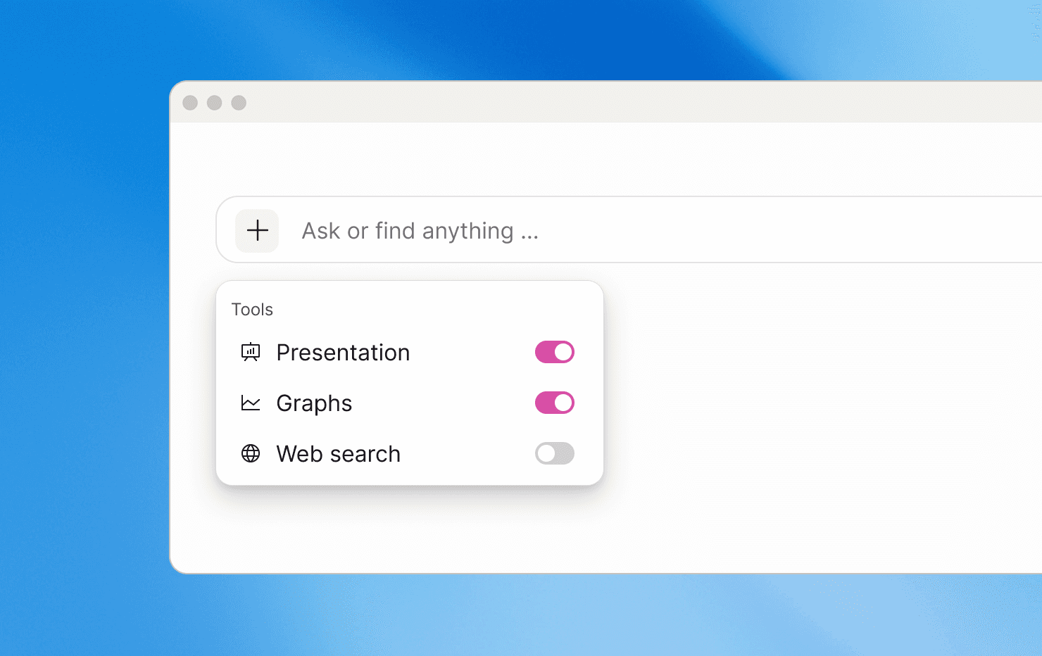 When selected, the chat uses the tools to produce the output requested—no extra prompting needed. A faster path from feedback to shareable artifacts.